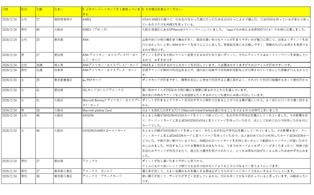 こちらはクラウドワークスで50名にアンケート調査をしたものですが、アメックスの中でも人気なものは比較的ゴールドカードが多かったかもしれません。