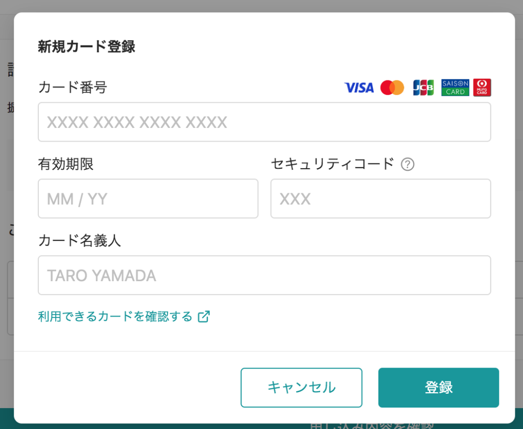 例えばこちらの画像などはWEBサイトになるのですがAMEXの使用はできません。このようにVISA,マスターカード、JCBカード、セゾンなどは利用できてもAMEXカードが使えないということはそれなりにあります。各種店舗でもカードが利用できるのか確認しましょう。